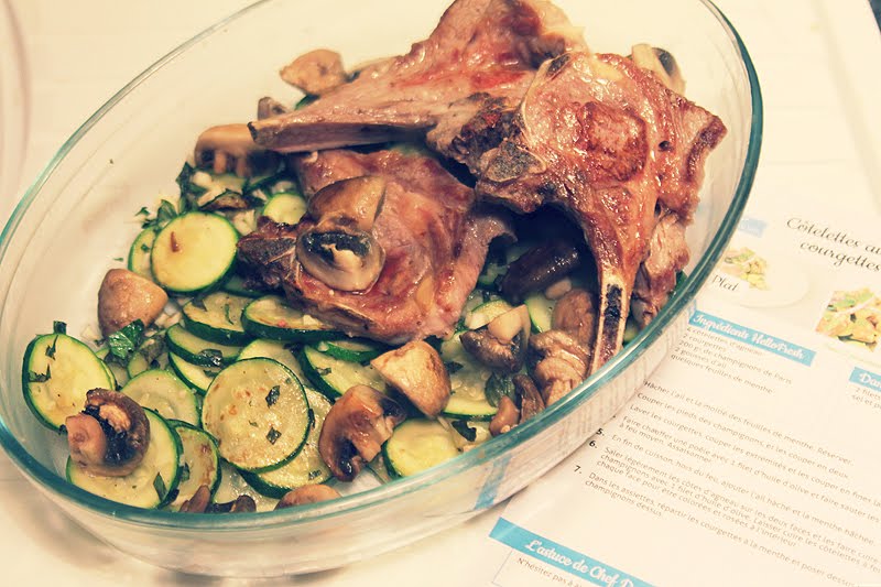 Un plat principal pour le soir avec Patrick, des Côtelettes aux champignons et courgettes à la menthe.