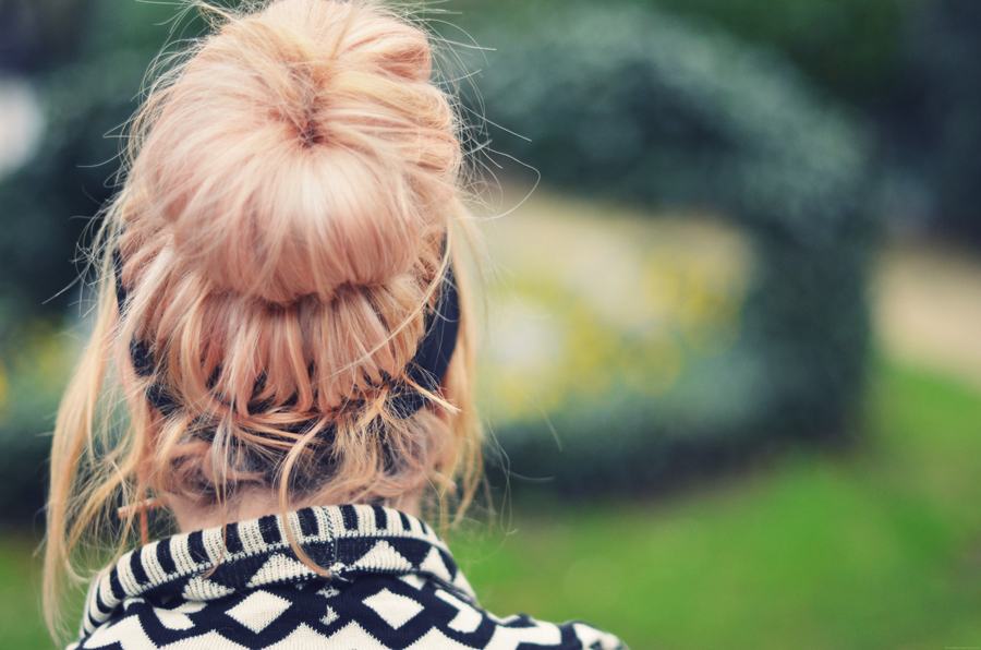 Je porte un bandeau American Apparel, un cardigan Urban Outfitters et un pull Nasty Gal.