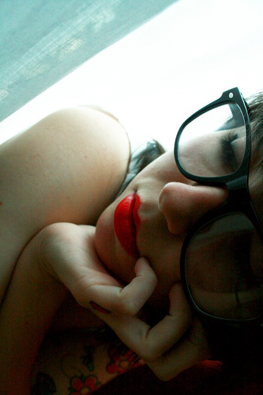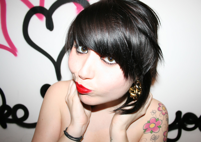 Rouge à levres, tifs noirs et tatoo’ original : c’est plutôt un bon début.