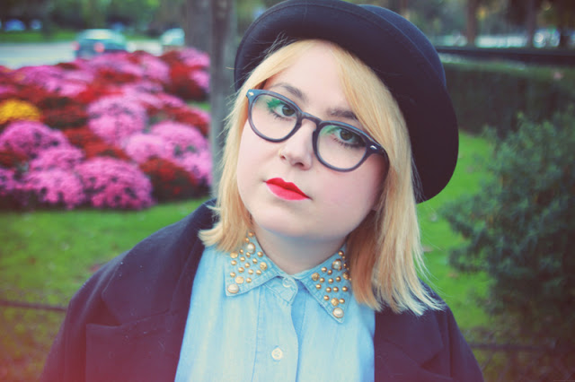 Ton chapeau tu l'as acheté où ? J'en cherche un comme ça mais pas en laine. Sinon elles sont sympa tes lunettes ! Cette couleur te va beaucoup mieux que le châtain !